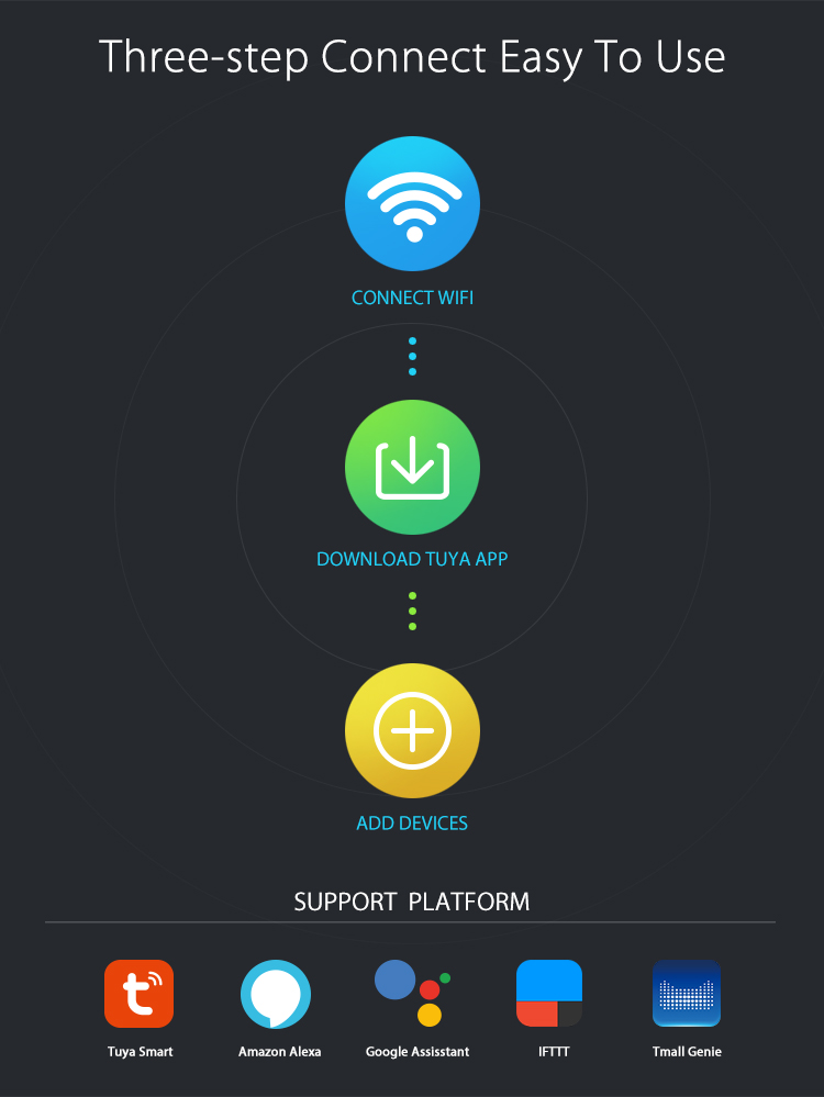 * Conecte y juegue con la aplicación Tuya simplemente descargue la aplicación en su teléfono con solo un minuto.